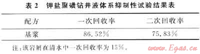 針對上述技術(shù)難點.以室內(nèi)研究為技術(shù)支撐,主要考慮抑制性、潤滑性能及流變性能,分別研制出了鉀鹽聚磺鉆井液體系和強抑制低傷害暫堵鉆井液體系。