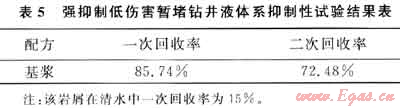 從表5看出,加入有機鹽抑制劑,大幅度提高了鉆井液體系的抑制能力,泥頁巖二次回收率高達72.48%,說明經(jīng)過該鉆井液浸泡后的井壁仍然穩(wěn)定。