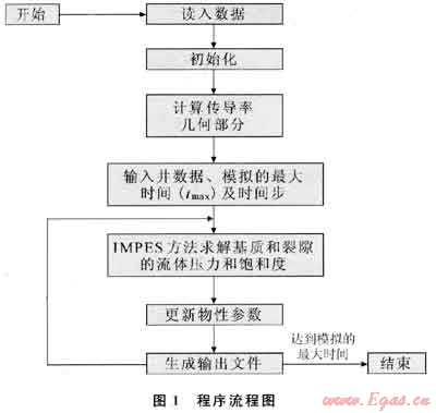 在上述模型建立的基礎(chǔ)上,采用自上而下的模塊化結(jié)構(gòu)設(shè)計,編制了求解考慮吸附變形的煤層氣分階段流動數(shù)學(xué)模型的計算機程序(圖1)。并針對沁水盆地樊莊區(qū)塊晉試1井開采的實例進行了計算。