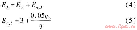 3級熱量表相對誤差限E3的計(jì)算式為: