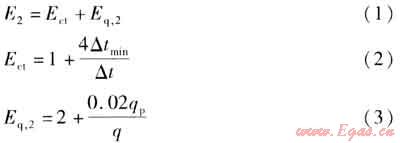 2級熱量表相對誤差限E2的計(jì)算式為: