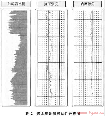 結(jié)合實際生產(chǎn)數(shù)據(jù)及油氣藏數(shù)值模擬,研究該氣田開采后期儲層孔隙壓力的衰減變化規(guī)律,通過室內(nèi)試驗測定崖城13-1氣田地層力學特性及強度特征(圖3),以及測井資料的分析處理,建立該氣田測井資料求取地層強度的經(jīng)驗?zāi)P?;利用多孔彈性介質(zhì)力學、巖石力學理論,建立井壁坍塌壓力及破裂壓力的計算模式,得出預鉆調(diào)整井地層孔隙壓力、坍塌壓力及破裂壓力剖面,為確定合理鉆井液密度及優(yōu)化井身結(jié)構(gòu)提供科學依據(jù)。