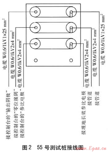 ③ 55號(hào)測(cè)試樁電位測(cè)量數(shù)據(jù)為0V。