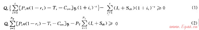 1) 單井初期產(chǎn)量界限。當(dāng)新鉆井初期產(chǎn)量大于該界限值時(shí),經(jīng)濟(jì)上才是可行的。應(yīng)同時(shí)滿足以下關(guān)系式: