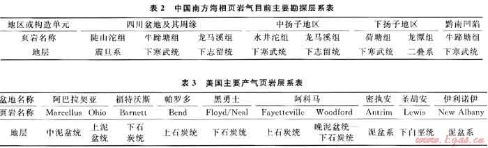 美國目前的產氣頁巖主要集中在泥盆系和密西西比系(下石炭統(tǒng))等層系,以晚古生代頁巖為主(表3)。
