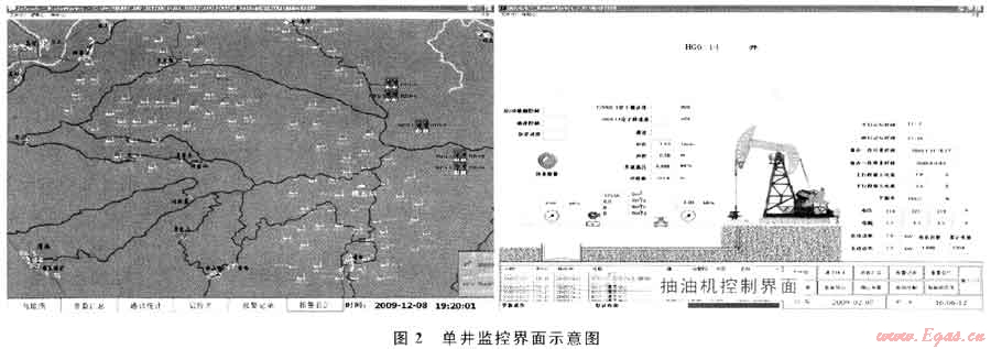 煤層氣自動(dòng)化監(jiān)控系統(tǒng)由多人協(xié)作同時(shí)開發(fā)完成,組成由21臺工控機(jī)組成的“兩級三地”遠(yuǎn)程監(jiān)控網(wǎng)絡(luò),分布在方圓100km2的山區(qū),最遠(yuǎn)處距監(jiān)控點(diǎn)70km,覆蓋了整個(gè)煤層氣由井、站、處理廠工藝流程全過程。圖2為某個(gè)區(qū)域單井監(jiān)控界面示意圖。
