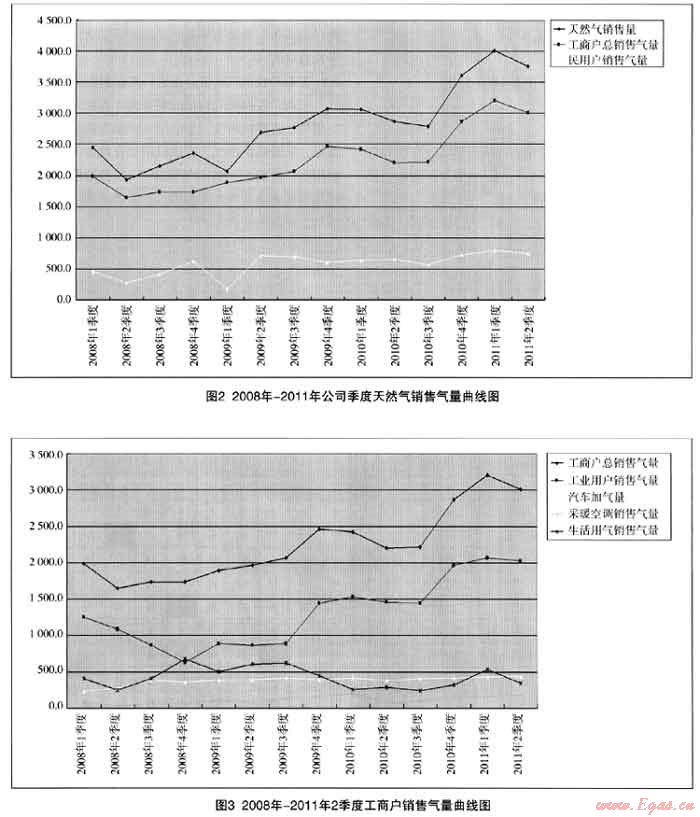 圖2中3條線分別代表公司天然氣總銷(xiāo)售量、工商戶(hù)銷(xiāo)售氣量及民用戶(hù)銷(xiāo)售氣量。