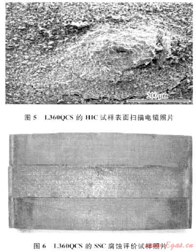 2) 采用淬火加回火工藝制造的L360QCS,S(0.003%)、P(0.02%)元素含量控制低,硬度小于248HV,在模擬普光氣田高含硫集輸工況的條件下沒有發(fā)生氫致開裂和硫化氫應力開裂,管材的抗硫性能較好。