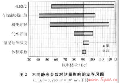 天然氣體積系數對儲量大小的影響雖然小,但仍將其考慮于模型中。體積系數的變化范圍由雪佛龍能源技術公司(ETC)提供。