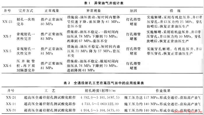 4) 與同區(qū)塊的常規(guī)射孔比較,同樣的油氣儲(chǔ)層,不同的射孔完井工藝,XX-24井等超高壓全通徑射孔實(shí)現(xiàn)了射孔槍當(dāng)生產(chǎn)篩管,為油氣上升地面提供了充足的流通面積。