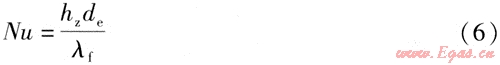 式中Nu——努塞爾數(shù),反映對(duì)流換熱過程的強(qiáng)度