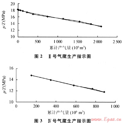 按照同樣的方法,繪制Ⅳ號氣藏的壓降圖如圖3所示,線性回歸公式Y=0.002X+17.98,得到氣藏的動態(tài)地質儲量為89.9×108m3。
