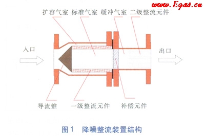 降噪整流裝置能有效阻斷管道內(nèi)超聲波的噪聲傳播,有一定范圍的降噪作用;