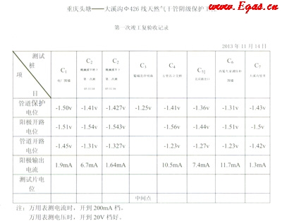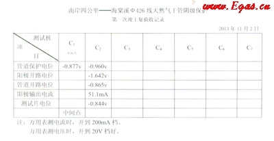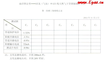 ④陽極輸出電流很弱或?yàn)榱銜r(shí),即達(dá)不到管道最小保護(hù)電流密度應(yīng)及時(shí)更換陽極包中犧牲陽極棒(片)等結(jié)論。