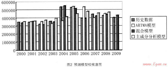 通過誤差的比較可以看出混合模型和主成分分析模型的預(yù)測效果要優(yōu)于ARIMA模型。Eli于該城市燃?xì)獍l(fā)展一直處于無規(guī)律狀態(tài),如2005年、2006年等年份燃?xì)庳?fù)荷會突然出現(xiàn)較大增長,所以在進(jìn)行預(yù)測的時候會出現(xiàn)較大的誤差,這也從一定程度上說明燃?xì)庳?fù)荷的預(yù)測精度對燃?xì)膺\營企業(yè)實現(xiàn)穩(wěn)定供氣有著重要的指導(dǎo)意義。