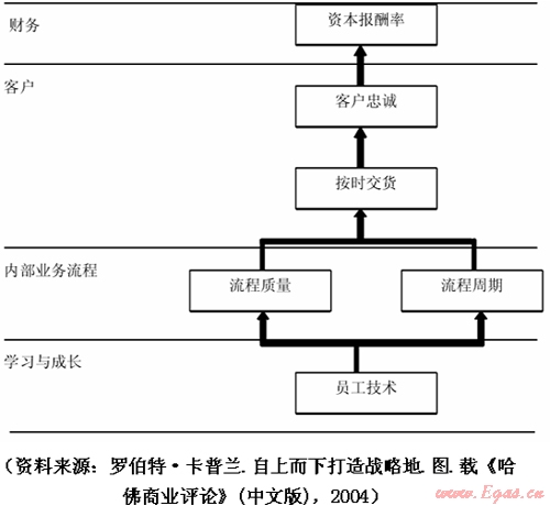由上圖可知,由于內(nèi)部業(yè)務流程的改善,流程質(zhì)量將會提高,流程周期將會縮短,將會實現(xiàn)“按時交貨”和“客戶忠誠”,最終實現(xiàn)“資本報酬率”提升。