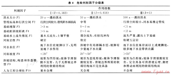 表5 跨越管橋洪水危險(xiǎn)度判別表