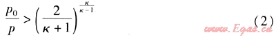 滿足式(1)時,流動屬于音速流。