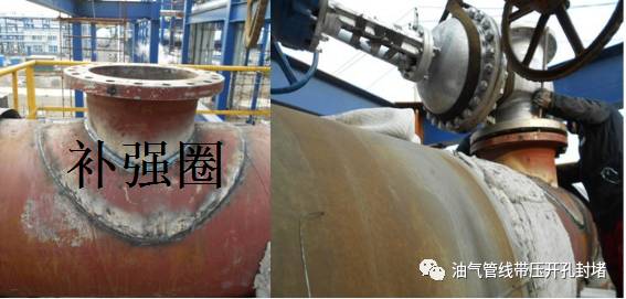 以上兩種施工工藝,根據(jù)主管線的設(shè)計壓力等級、開孔口徑是否>D/2(D為管道的公稱直徑)可選擇全包開孔管件和非全包管件;當(dāng)管線設(shè)計壓力等級不超2.5Mpa時,開孔口徑>D/2時,也可選用較為經(jīng)濟(jì)的補強圈措施對母管線進(jìn)行補強處理。
