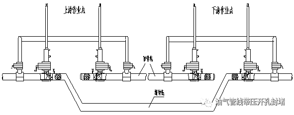 此工藝適用于長距離的不停輸改線施工,可采用上、下游分別雙封的方式進(jìn)行施工作業(yè);另外,因道路/鐵路占壓需要遷改時選用此方案也較為合適,在道路/鐵路的兩側(cè)分別進(jìn)行施工,不影響道路/鐵路的正常通車。改線后滿足施工通球的要求。