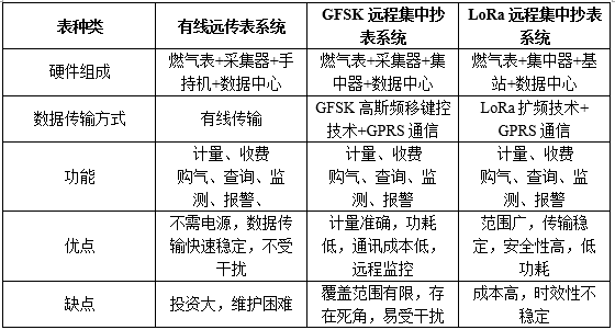 我們將三種遠(yuǎn)傳燃?xì)獗淼男阅苓M(jìn)行了對(duì)比,如表2所示。
