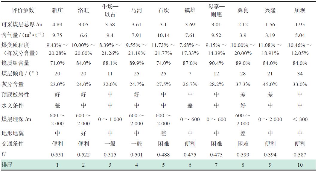 5 鎮(zhèn)威煤田煤層氣評(píng)價(jià)參數(shù)及選區(qū)結(jié)果表