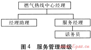 燃?xì)鉄峋€中心根據(jù)業(yè)務(wù)需要,可以劃分一定的服務(wù)管理層級(jí)(見圖4),使客戶提出的不同類型問(wèn)題得到及時(shí)的處理和解決。