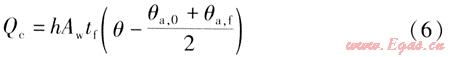 根據(jù)以上假設(shè),隨著風(fēng)機(jī)盤管的工作,室內(nèi)溫度不斷降低,室內(nèi)空氣與墻內(nèi)壁面間的對流傳熱量Qc的計(jì)算式為: