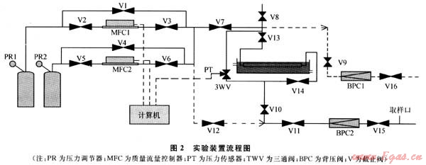 用如圖2所示的實驗流程進行脫硫和再生。采用甲烷硫化氫混合進氣初步模擬煤層氣,其中H2S含量222.3mg/m3,總流量為280mL/min。脫硫床為內(nèi)徑10mm、長250mm的不銹鋼管。床層溫度維持298K,再生時將床層放至常壓并用25%流量的甲烷正向吹掃。