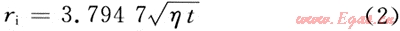 石油工業(yè)中國(guó)際上對(duì)于探測(cè)半徑的定義為:在某一確定的瞬時(shí),給井中施加一個(gè)壓力脈沖,對(duì)該脈沖響應(yīng)達(dá)到最大值的位置就稱(chēng)為探測(cè)半徑。在標(biāo)準(zhǔn)單位制式下,探測(cè)半徑表示為[1]: