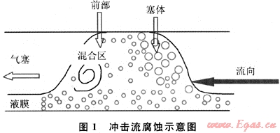 沖擊流水平管道易形成段塞體,產(chǎn)生沖擊腐蝕、流體促進腐蝕,從而與電化學腐蝕交替作用促進局部腐蝕。