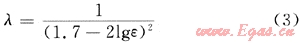 式(2)中段塞密度可取原油密度,段塞速度可取流體混合流速,因沖擊流處于水力粗糙區(qū),在該流態(tài)區(qū)內,λ僅與管壁相對粗糙度(ε)有關,可用尼古拉茲公式求水力摩擦系數(shù),計算公式見式(3):