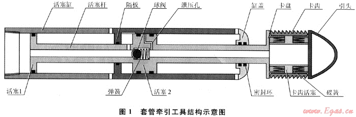 1 套管牽引工具的結(jié)構(gòu)組成、應(yīng)用條件與工作過(guò)程