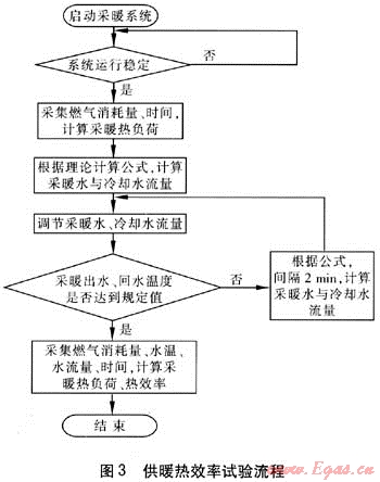 為了進(jìn)一步說(shuō)明系統(tǒng)軟件設(shè)計(jì)過(guò)程,下面以供暖性能試驗(yàn)中的供暖熱效率試驗(yàn)為例加以詳細(xì)闡述。該試驗(yàn)過(guò)程需要采集的數(shù)據(jù)有供暖出水溫度、供暖回水溫度、供暖水流量、燃?xì)庀牧?、時(shí)間等,要控制冷卻水流量、供暖水流量。試驗(yàn)控制流程見圖3。