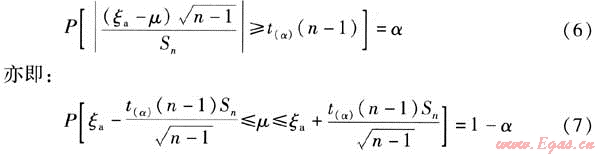 根據(jù)數(shù)理統(tǒng)計定理,取自正態(tài)總體的子樣ζ,其子樣均值ζa、子樣方差Sn2、總體均值μ、總體標(biāo)準(zhǔn)差Sn構(gòu)成統(tǒng)計量A,A是自由度為n-1的t變量,它服從t(n-1)分布。