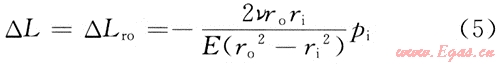 式中:ro為套管外徑,mm;ri為套管內徑,mm;pi為套管受內壓力,MPa;σr為徑向應力,MPa;σθ為切向應力,MPa;σz為軸向應力,MPa;△L為變形量,mm。