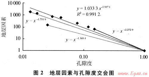 根據地層因素與孔隙度交會圖(圖2),研究區(qū)a平均取值為1.033,仇平均取值為1.92。;T(℃)=27.27-0.0327×海拔深度。