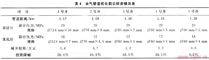 優(yōu)化后可以降低采氣管道、閥門和加熱爐的工程投資,平均單井投資可降低2.3%。