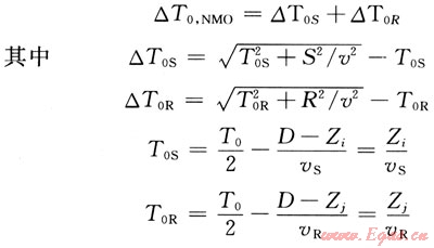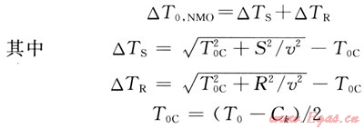 式中△TS和△TR為炮、檢點(diǎn)正常時(shí)差;S、R為炮點(diǎn)和檢波點(diǎn)到CMP點(diǎn)水平距離;口為動(dòng)校正速度;T0C為CMP點(diǎn)的丁T0時(shí)間;T0為基準(zhǔn)面時(shí)間。