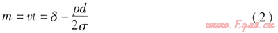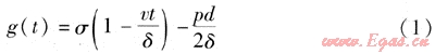 (1)為強度隨壁厚減薄而降低的應力強度模型,公式中表示管道實際的剩余強度,表示管道在操作壓力下必須達到的強度,vt表示管壁在t內(nèi)的腐蝕減薄量,當g(t)=0求得: