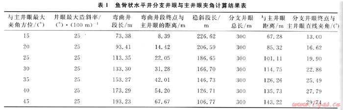 在魚(yú)骨狀分支水平井沒(méi)計(jì)過(guò)程中,分支井眼與主井眼只有達(dá)到一定的夾角的情況下,才顯示出魚(yú)骨狀分支水平井的巨大經(jīng)濟(jì)效益,但是鑒于現(xiàn)場(chǎng)鉆井技術(shù)條件,分支井眼與主井眼夾角是有一定限制的。因此分別以45°夾角和20°夾角兩種情況為例進(jìn)行了計(jì)算分析。