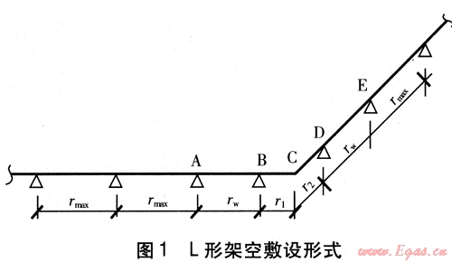 即L形架空敷設供熱管道轉(zhuǎn)角兩側(cè)活動支架的最大允許間距為0.816rmax。
