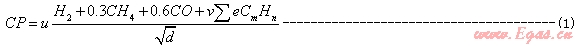 1.燃燒勢(CP)是反映燃具燃燒狀態(tài)的燃?xì)馓匦詤?shù)。它既反映燃燒速度對離焰、回火的影響,同時還反映火焰高度對煙氣中CO含量的影響。燃燒勢不是燃燒速度。CP值與燃燒速度也不單純呈比例關(guān)系。這樣看來稱其為燃燒速度指數(shù)不是非常合適,也容易與韋弗燃燒速度指數(shù)相混[3] 。