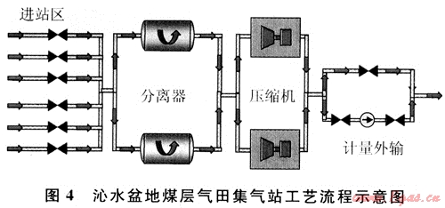 由于井口采出氣壓力低,外輸商品氣壓力高,故蘇里格氣田和沁水盆地煤層氣田均采用在集氣站和處理廠兩次增壓的方式。集氣站氣體出站壓力根據(jù)有關(guān)因素綜合考慮而定。
