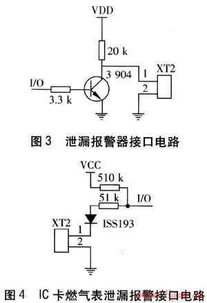 ⑤ 泄漏報(bào)警接口電路見(jiàn)圖3、4。