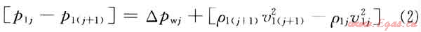 以井筒上第j條裂縫和第j+1條裂縫之間的滲流進行研究(圖1),第j條裂縫左端的進入壓力為p1j,出口端的壓力為p2j,,進入口速度和出口速度為v1j和v2j??紤]井筒內(nèi)壓降,由動量定理可得: