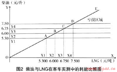 到目前為止,全國已經(jīng)投產(chǎn)的LNGX:廠超過40家,在建和準(zhǔn)備前期手續(xù)的超過30家,預(yù)計(jì)到“十二五”末期,LNG工廠總產(chǎn)能將超過1000萬t。全國已經(jīng)投產(chǎn)的接收站共有5個(gè),在建的接收站有2個(gè)。十二五”期間,我國將建設(shè)LNG接收站17座,年接收能力超過5000萬t。LNG槽車運(yùn)輸能力隨著LNG市場覆蓋率的增加而大幅提高,擁有超過100輛槽車運(yùn)載能力的企業(yè)不少于3家,小型LNG槽船也將在近期內(nèi)投入市場。國內(nèi)LNG利用初期主要是通過衛(wèi)星站形式供應(yīng)小區(qū)、大型工業(yè)及小規(guī)模城市,進(jìn)口LNG因?yàn)椴少徚看笾饕?yīng)電廠及大中城市。根據(jù)跟車實(shí)測,客車百公里消耗燃料量以公斤為計(jì)量單位的LNG數(shù)值和以升為計(jì)量單位的柴油數(shù)值是近似的。圖2可以反映兩種燃料實(shí)際使用的成本差距。過去18個(gè)月,華東地區(qū)LNG衛(wèi)星站到岸均價(jià)維持在5500元/t左右。至少25%的價(jià)格差距促使LNG將逐漸擠占汽柴油的市場份額,重型卡車、長途客車以及船舶LNG利用市場將會(huì)呈現(xiàn)爆炸式增長。單一的大型LNG倉儲業(yè)務(wù)國內(nèi)尚未有投資人涉及。LNG冷能利用是能源綜合利用的一個(gè)方向。