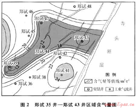 鄭試35井鄭試43井所在區(qū)域(圖2)靠近寺頭斷層,區(qū)域內(nèi)NNE向小斷層發(fā)育,而鄭試35井和鄭試43井均處于斷層附近,距離斷層小于100m3。斷層切割煤層會破壞頂?shù)装宓姆獯嫘阅?,加速煤層氣的解析、逸散,且部分?jǐn)鄬涌赡軠贤簝痈浇畬樱瑢?dǎo)致煤層氣的溶解流失。因此,鄭試35井-鄭試43井區(qū)內(nèi)含氣量普遍較低,鄭試35井、鄭試43井的含氣量僅為3.24m3/t和8.06m3/t。