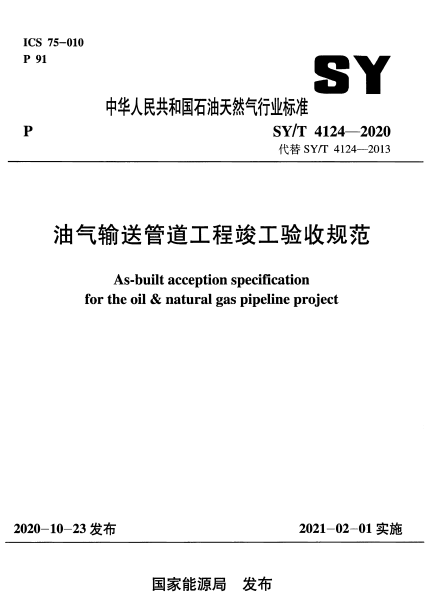油氣輸送管道工程竣工驗收規(guī)范SY/T 4124-2020