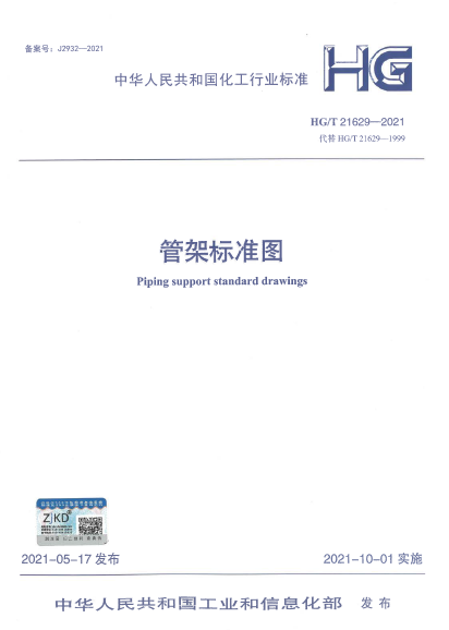 管架標(biāo)準(zhǔn)圖HG∕T 21629-2021?規(guī)定了管架材料的選擇,管架的設(shè)計(jì)、制作、安裝以及管架標(biāo)準(zhǔn)圖等。